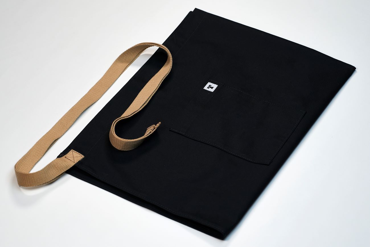 Un delantal elegante y con mucha fuerza, hecho con sarga de alta resistencia. Las correas con tacto de algodón y con un bolsillo muy práctico a la hora de trabajar.